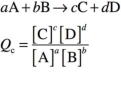 Ratio of the concentrations of the products to the concentrations of the reactants at any point during the reaction aside from equilibrium, where each reactant and product in the expression is raised to the power of its stoichiometric coefficient. Commonly denoted by Q.