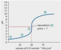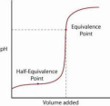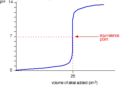 stoichiometrically equal amounts of acid and base have neutralized each other; occurs halfway up the jump in inflection in a titration