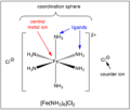 A compound in which a central metal atom or ion is bonded by coordinate covalent bonds to other atoms or groups.