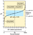 the ability of a buffered solution to absorb protons or hydroxide ions without a significant change in pH; determined by the magnitudes of [HA] and [A-] in the solution; affected by the dilution of the buffer
